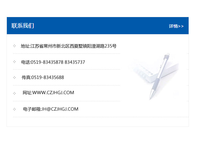 地址:常州市新北區友邦商務大廈1幢16、17層  電話:0519-85101652  傳真:0519-85112595  郵編:213022  網址:www_cz-jiayue_cn.9igsh.com  郵箱:xiajifengaa@163.com